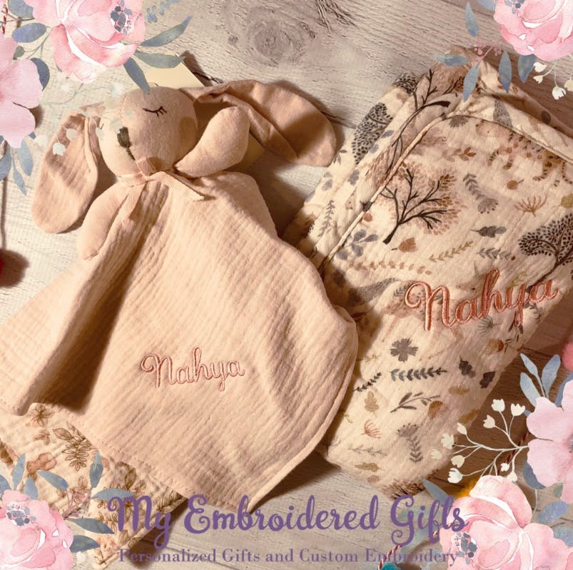 I purchased this adorable lovey years ago online and searched and searched to find it again. So happy to stumble across it here! This was my first purchase with My Embroidered Gifts and I was beyond pleased. I reached out to Debra with a few questions about text color (didn't see it on the website) & font and she was super responsive. Shipping was lightning quick too. I chose thread/text color: medium pink and font: script. Turned out PRECIOUS!!! I only wish I took a picture before I gifted it, so I could post it here. I am attaching a picture Debra emailed from a previous order. Would absolutely order here again!